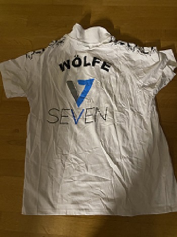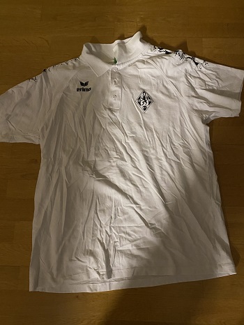 Polo-Shirt in weiß (Gr. XL) mit Vereinslogo und Werbung (V7) auf dem Rücken